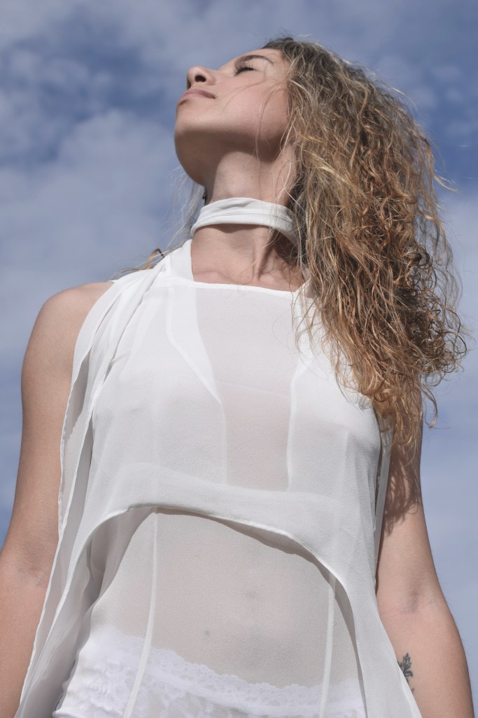Por ello, se crearon dos prendas que representan los conceptos sostenibles de modularidad y versatilidad. Basadas en unos patrones sencillos, sin apliques, ni intervención sobre el textil. Se pretende que cada prenda y su posición escogida, tengan un valor otorgado y se transformen en una «segunda piel» para la persona que la lleva.
