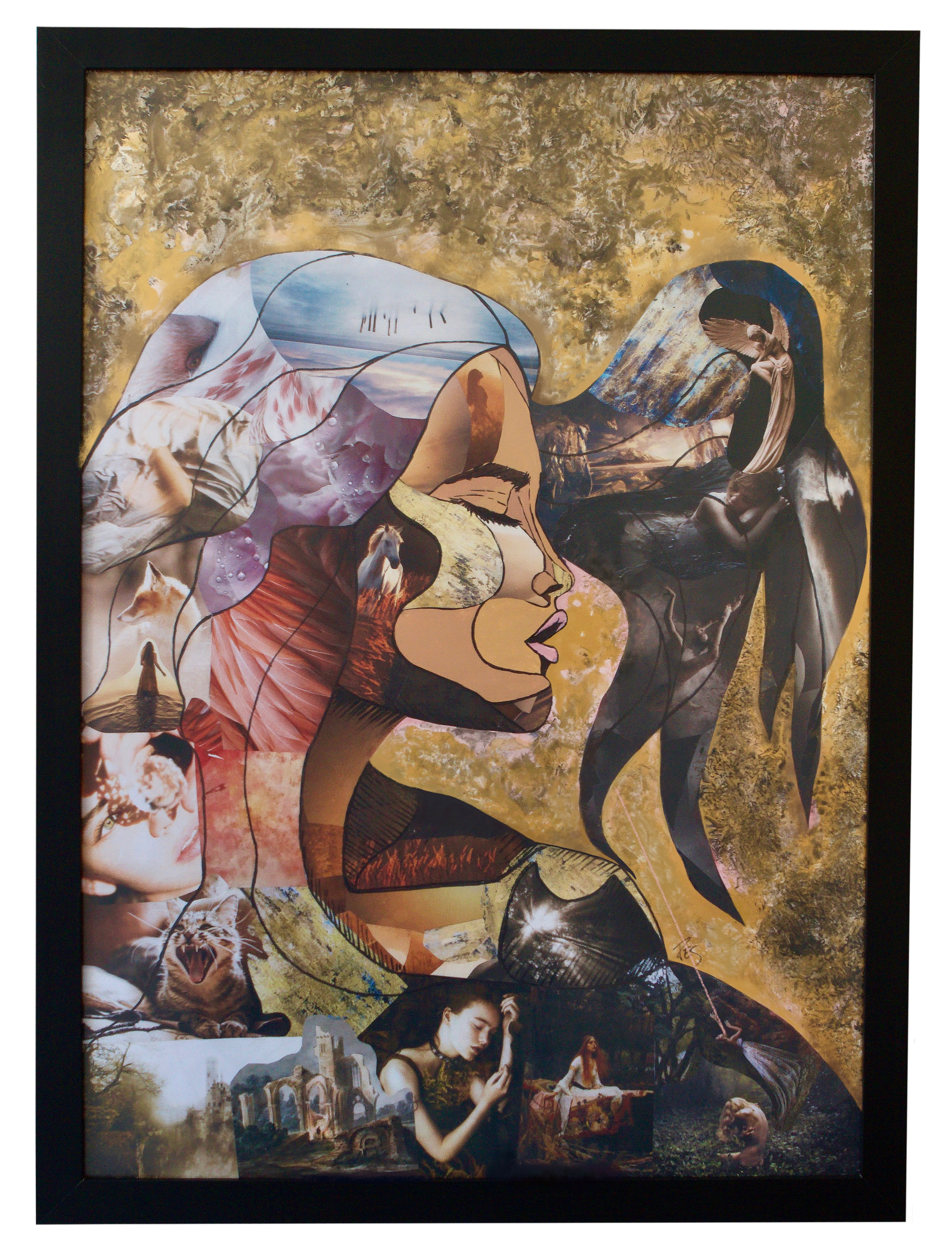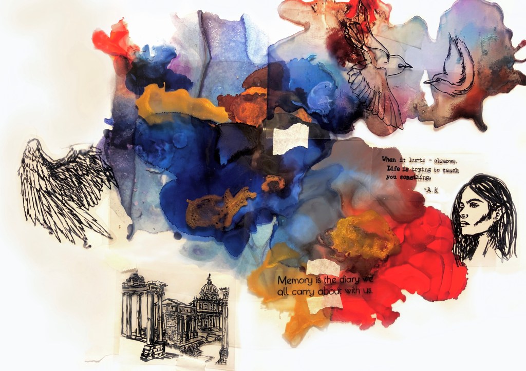 Autoconcepto – Mix Media. Collage, tintas de alcohol y gráfico. SOLD.